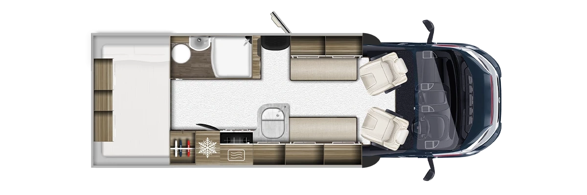 Showcasing the beautiful new Moyet Oak wood furniture and contemporary two-toned upper locker doors, with luxury grey upholstery as standard, each model demonstrates a warm, relaxing atmosphere, perfect to return to after a long day exploring. The Auto-Trail Apache 632 is a suitable motorhome for a family of up to six, with the option to raise the rear transverse bed to create a significant storage area underneath, for those long trips to the continent. For those wanting a rear lounge motorhome, the Apache range offers two models with luxury rear lounges, perfect for relaxing in the day time or evenings.
